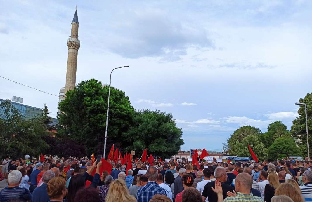 По завршување на протестот пред полицијата, граѓаните се упатија кон битолскиот затвор каде што е притворен Алабаковски, за да му изразат поддршка.